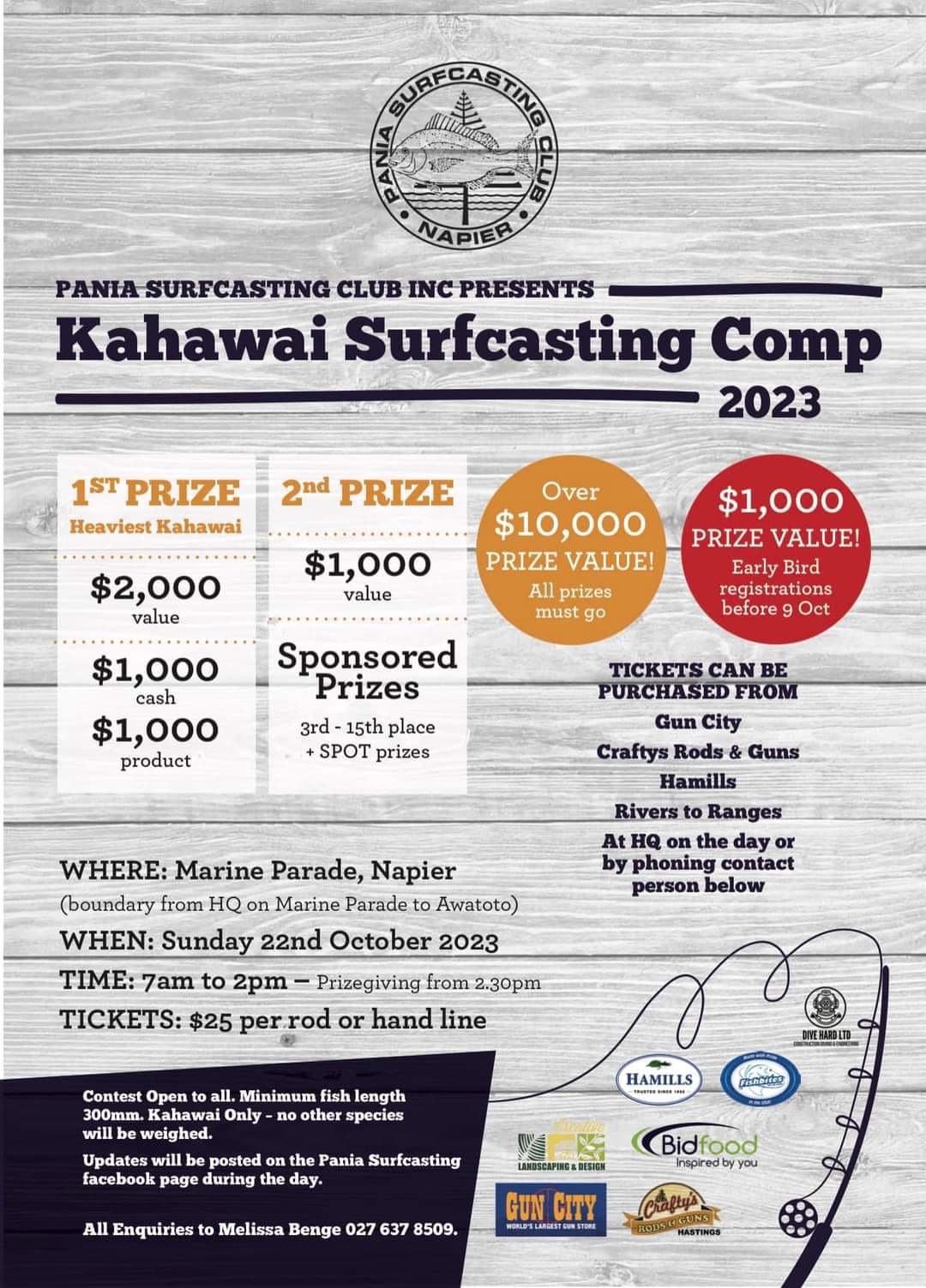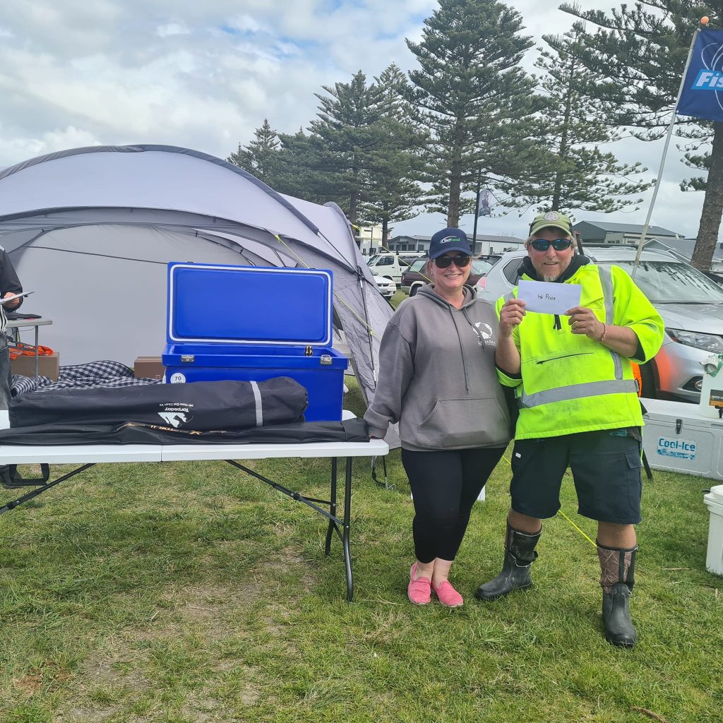 Congratulations to our comp winner Dion with a kahawai of 2.565kg. Pictured below with one of our 1st Prize sponsors Nat from Bidfood Hawkes Bay